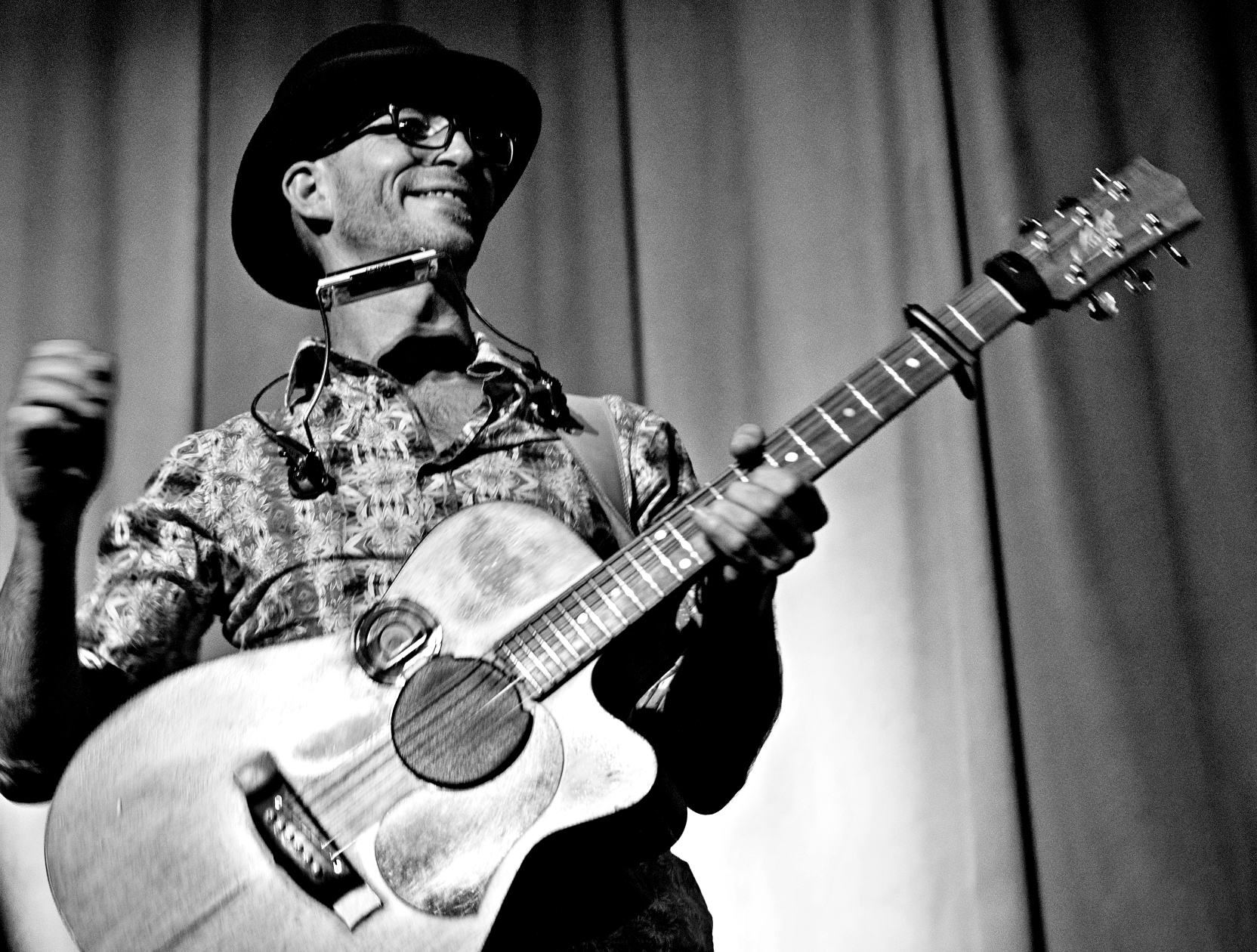 Für Schlagzeug und Bass werden Alltagsgegenstände und Akustikgitarre hemmungslos zweckentfremdet. Mit Blues Harp, sechssaitiger Gitarre, soulig-klarer Stimme und irrwitzigen Spieltechniken performt er raffiniert arrangierte Songs über das Leben – Musik, die ins Ohr und in die Beine geht.
