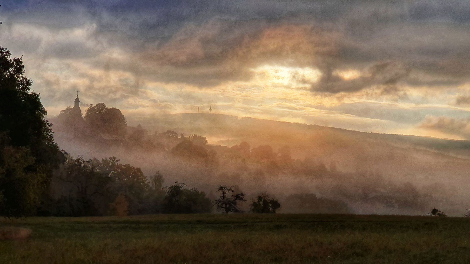 Ein ganz besonderes Foto – im Hintergrund die evangelische Kirche im Stadteil Grenzhausen
