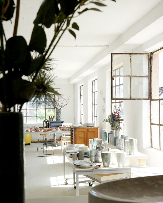 Das Keramik Kombinat befindet sich in den Räumen einer ehemaligen Schlosserei. Im Frühjahr 2022 konnte Nicole Thoss diese, nach langem Leerstand, anmieten und liebevoll renovieren. Die untere Etage, die nun als Ladengalerie und Werkstatt dient, wurde behutsam umgestaltet, um den Besuchern eine erlesene Auswahl an kunsthandwerklichen Arbeiten zu präsentieren.