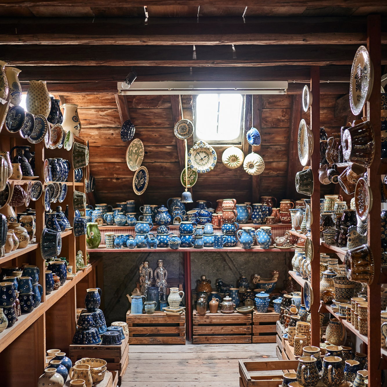 In der Kunsttöpferei werden in Tradition der Schlesisch-Bunzlauer Keramik Gefäße mit Pfauenaugendekor und Engobemalerei produziert.
