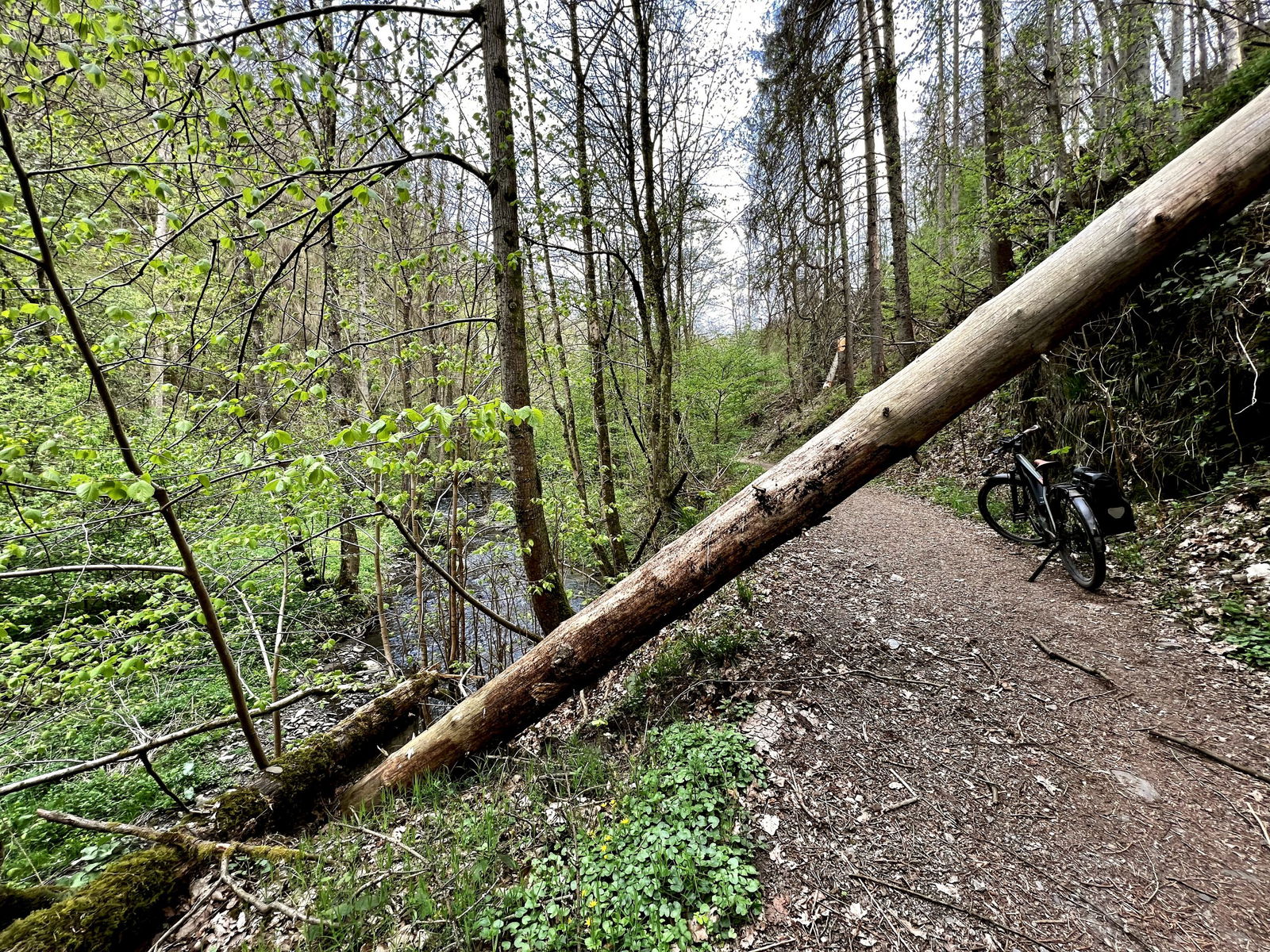 Im Brexbachtal ist der Weg nach wie vor an zwei, drei Stellen durch Bäume versperrt, diese lassen sich aber leicht passieren.
