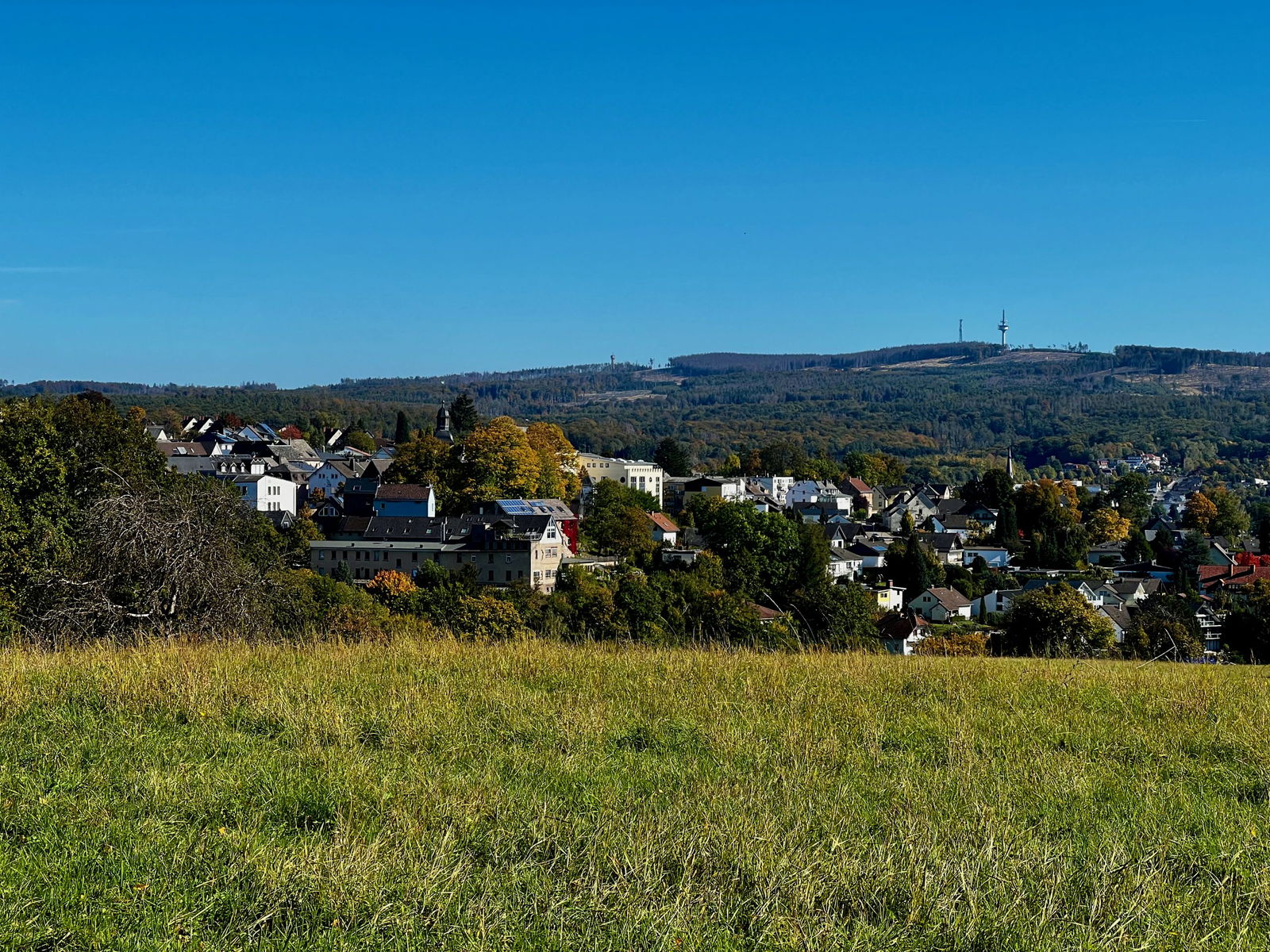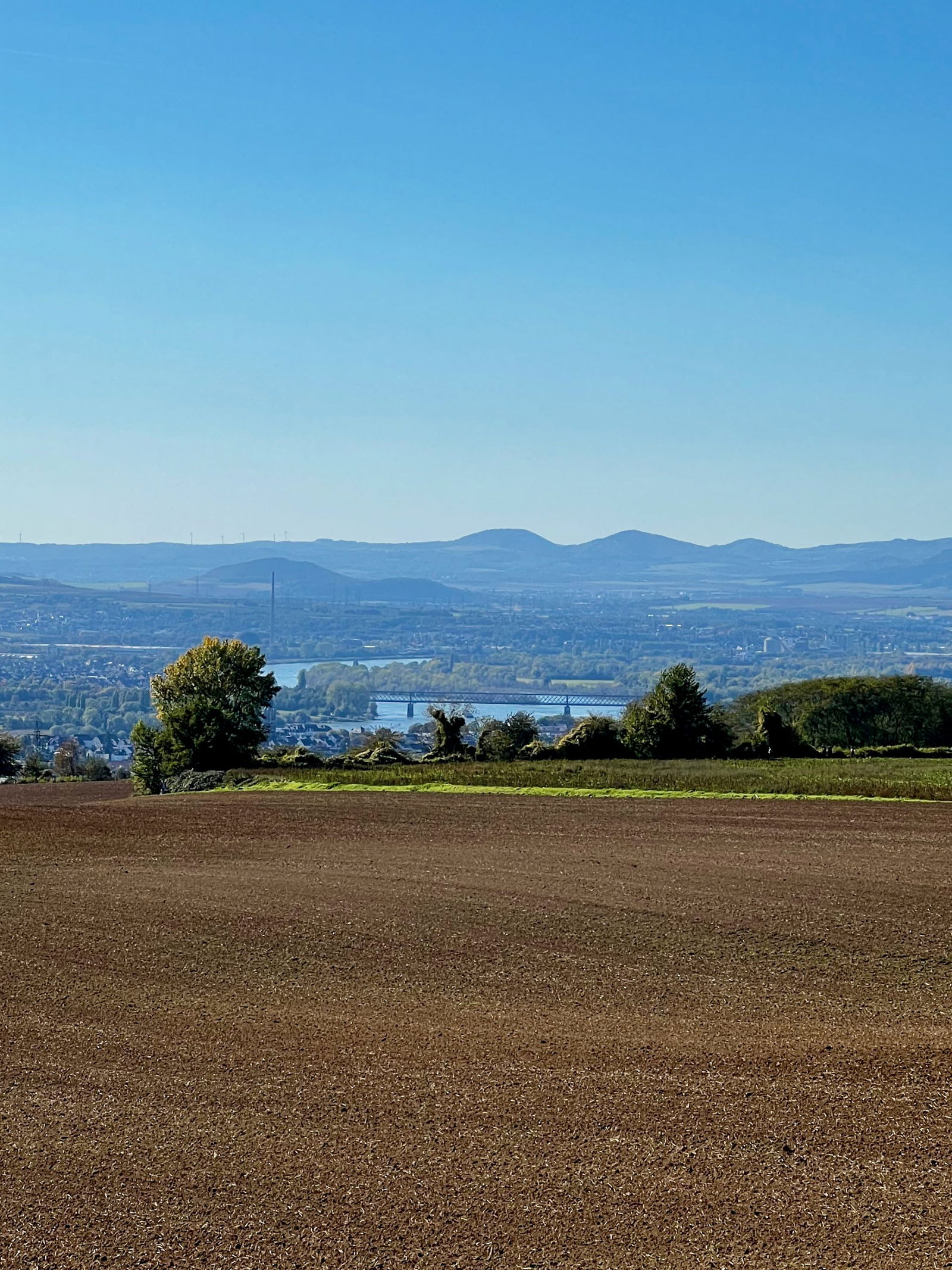 Wir kommen wieder aus dem Wald, auch hier erwartet uns ein herrlicher Weitblick über Koppeln, Feldern und Wiesen hinweg, bis hin ins Rheintal bei Neuwied. Wir radeln einen kleinen wunderbaren Pfad entlang, kommen am Meisenhof vorbei. Wer Lust auf Bier, Schnitzel, Steaks und Pommes hat, kann hier gut rasten. Wir fahren weiter.