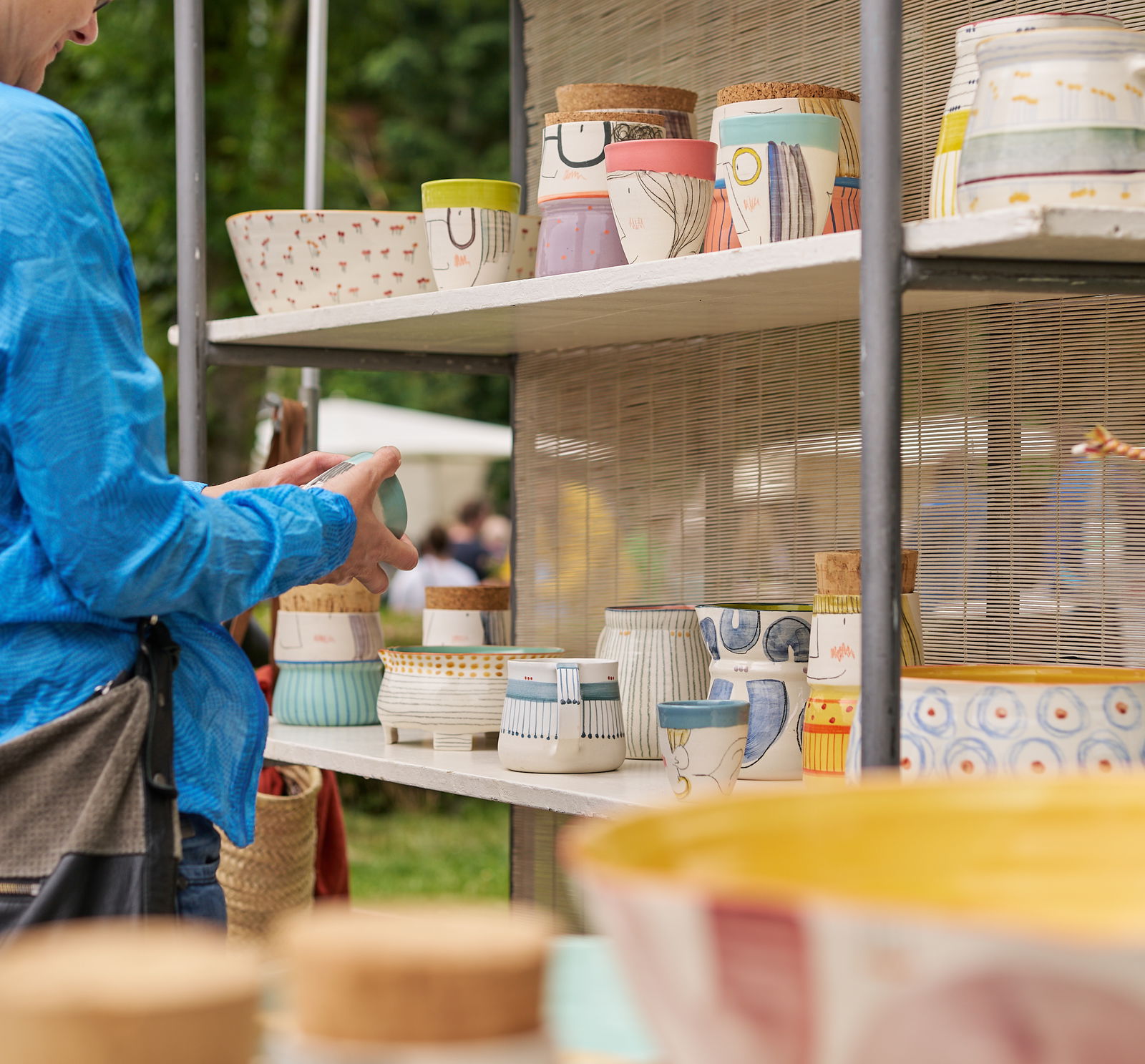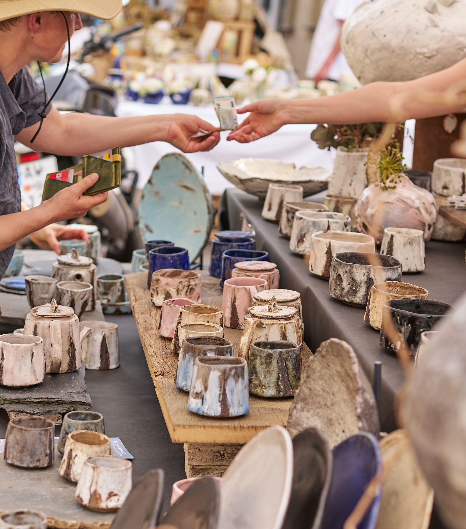 Neben dem bunten Marktgeschehen standen zwei Ereignisse im besonderen Fokus: die Offene Deutsche Töpfermeisterschaft und die feierliche Preisverleihung im Keramikmuseum Westerwald. Ein weiterer inhaltlicher Schwerpunkt galt dem diesjährigen Gastland, der Schweiz. Auf einer eigens dafür bereitgestellten Fläche präsentierten acht ausgewählte Keramiker:innen aktuelle Positionen der Schweizer Keramikszene. Abgerundet wurde das Programm am Samstagabend mit dem Naspa Open-Air-Konzert auf dem Lagueglia-Platz.
