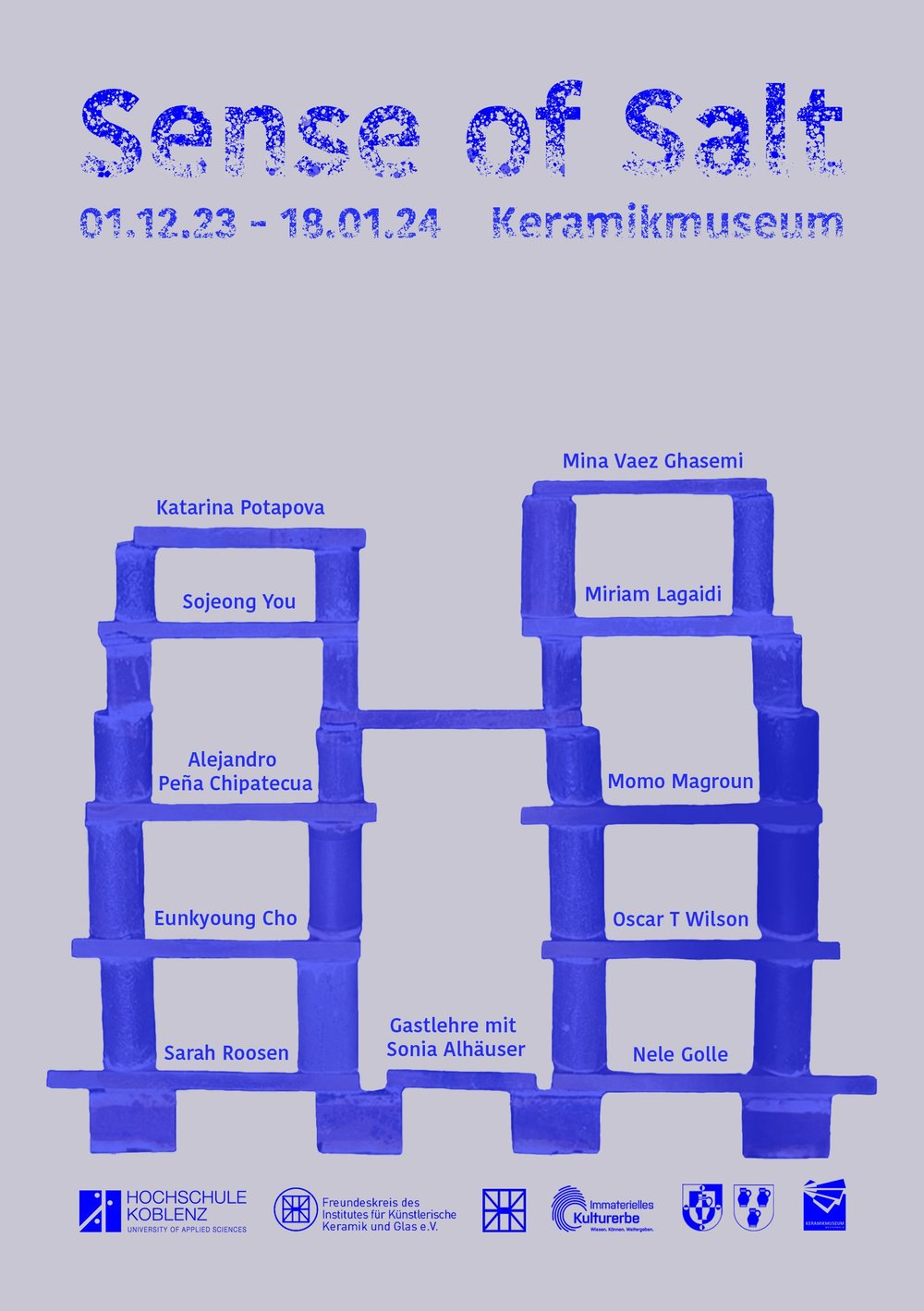 Die Keramiken präsentieren sich in einer gemeinsam entwickelten Installation, welche durch das Hinzufügen bewusst gewählter Leerstellen die Geschichte des zum immateriellen Kulturerbes zählenden „Westerwälder Steinzeugs“ genauso miteinbezieht, wie den Blick in die Zukunft dieser jahrhundertealten Tradition. Das Besondere an „Sense of Salt“ ist der Versuch, neu zu berühren, ohne Traditionelles zu verneinen. Überliefertes handwerkliches Wissen verbindet sich mit eigenständigem künstlerischen Vokabular.