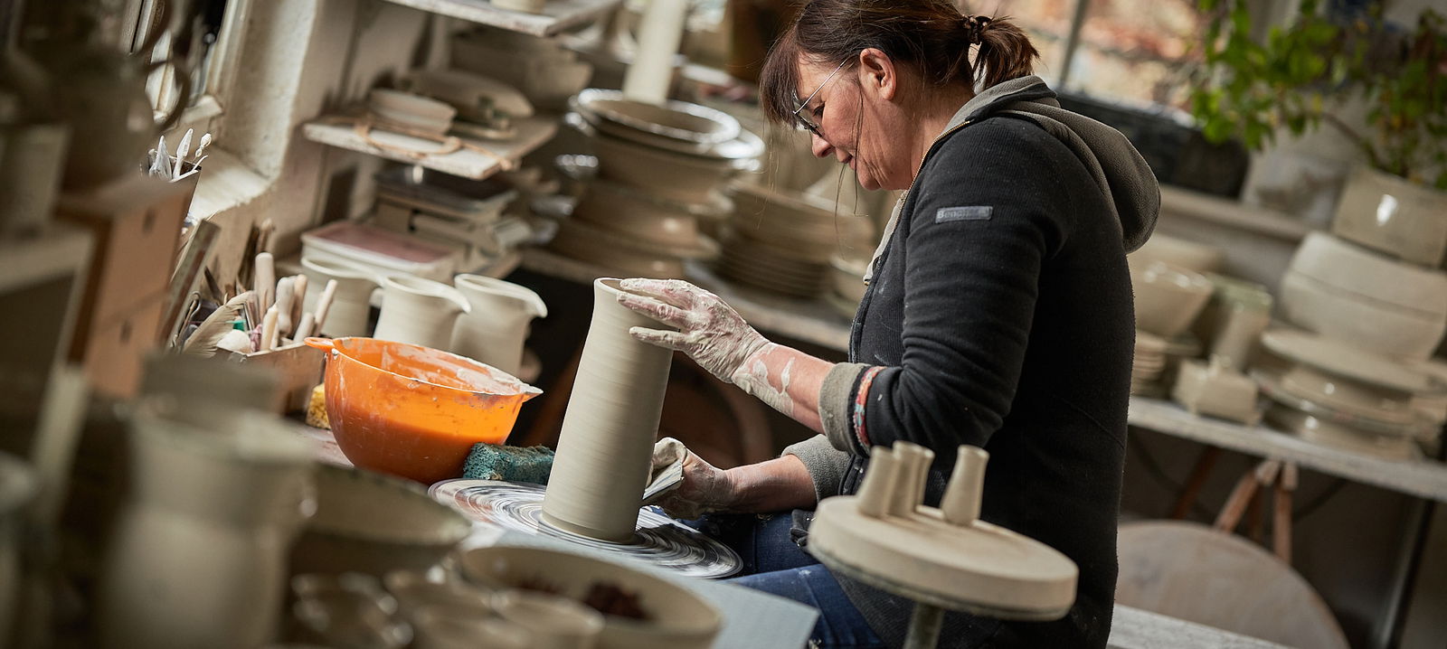 Dann bist du zur klassischen Scheibentöpferin ausgebildet worden?