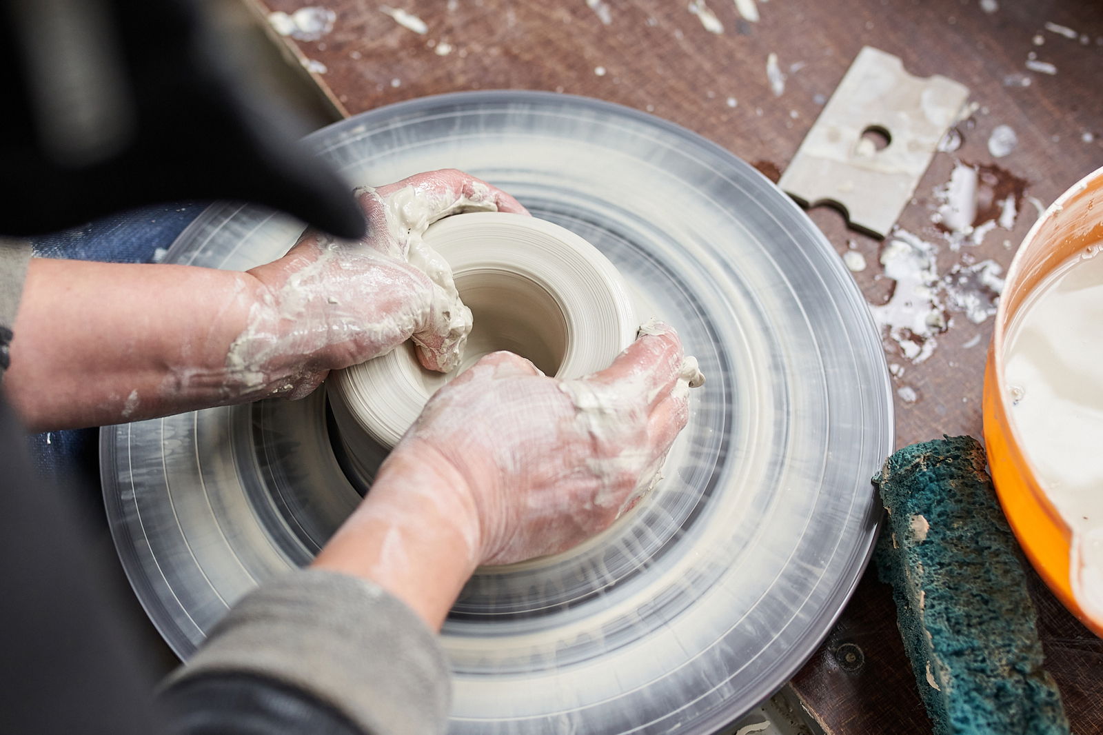 Ton ist ein schönes Material. Das plastische Formen fasziniert mich. Das Drehen an der Scheibe und das Arbeiten mit meinen Händen gefällt mir. Der lange Prozess, den ein Werkstück durchlaufen muss, finde ich spannend, angefangen von einer Idee, dann das Formen und Trocknen und zum Schluss der immer etwas unberechenbare Brennvorgang.