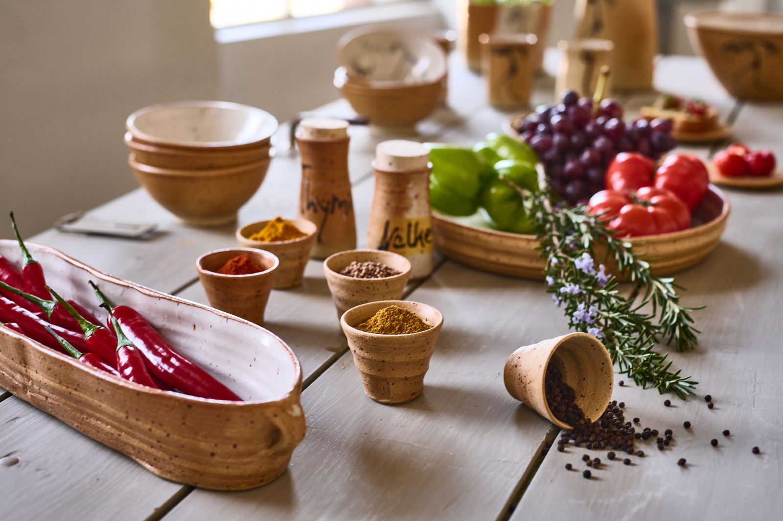 Da ich ja Geschirr mache, muss das natürlich auch gut benutzbar sein, eine hohe Qualität haben, und auch den Qualitätsansprüchen genügen (z.B. bei der Glasur). Die Überlegung war dann, wo will ich damit hin, in welche Richtung? Nimmt man bspw. das Ikea-Geschirr, das ist ja an sich nicht schlecht, es ist praktisch und austauschbar. Aber was ich sagen will, ist, da ist ein Teil exakt wie das andere. Und damit wollte ich auf gar keinen Fall konkurrieren. Wenn ich in Serie produziere, dann eine kleine Serie und dann müssen die Teile hauptsächlich von der Formgebung und ästhetisch funktional zusammenpassen, aber sie dürfen sich bzw. sollen sich voneinander unterscheiden. Dann dürfen Spuren von Fingern oder Eindrücke bleiben, die ich dann im Laufe der Zeit sogar bewusst hineingemacht habe, um jedem Stück seinen eigenen Touch zu geben. Das ist gerade das Schöne an der Keramik. Keramik ist ein plastisches Material, da dürfen Rillen und Spuren zu sehen sein, die zeigen, dass das man Berührungen verewigen kann. Ich will nichts, was aussieht wie Plastik. Ich will ein keramisches Material, das seinen eigenen, unverwechselbaren Charakter hat.